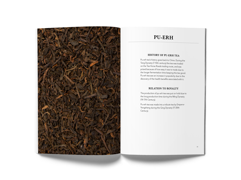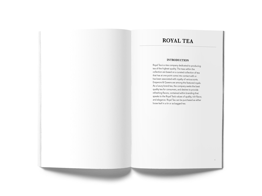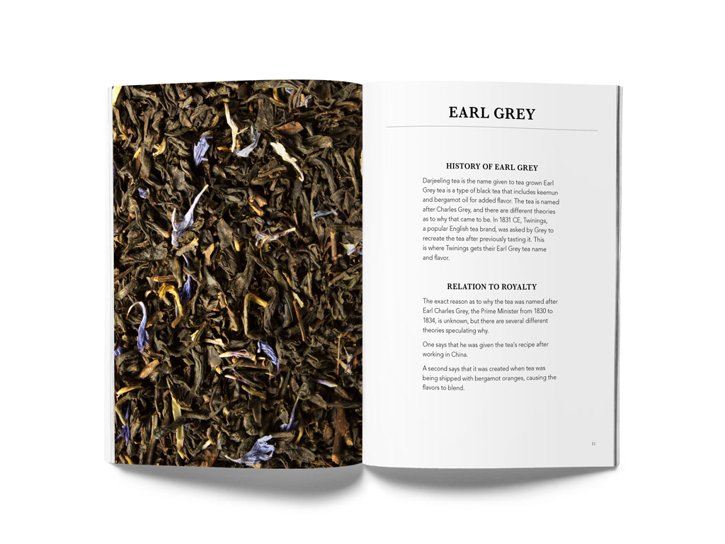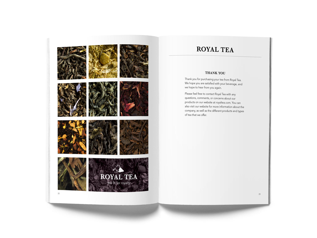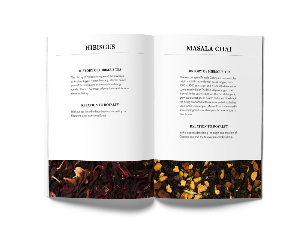 The Royal Tea catalog was created to develop an understanding of the curating process. The tea collected and displayed in the Royal Tea catalog each has a connection to various forms of royalty throughout history around the world.